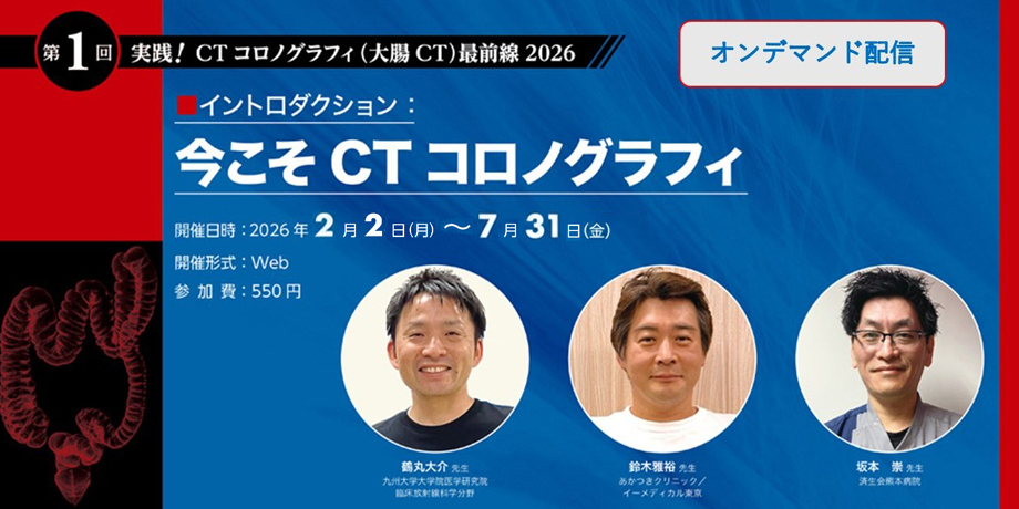 本シリーズの導入回として、鶴丸先生・鈴木先生・坂本先生による座談会形式で、大腸CTCの全体像を俯瞰します。それぞれ異なる立場から、大腸CTCの現状や役割、導入・運用における視点の違い、そして今後の発展や可能性について語り合います。