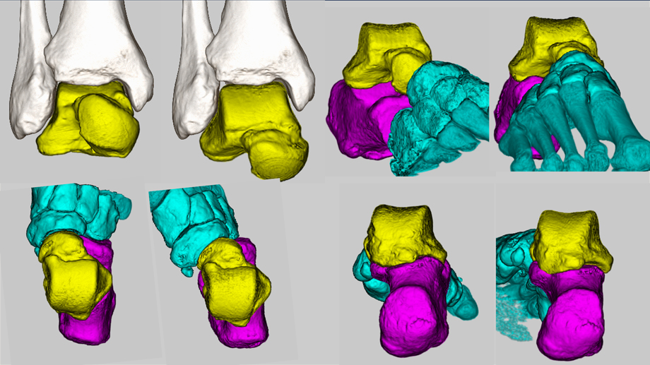 距腿関節だけでなく、距骨下関節やショパール関節が足の複雑な動きに寄与している。
