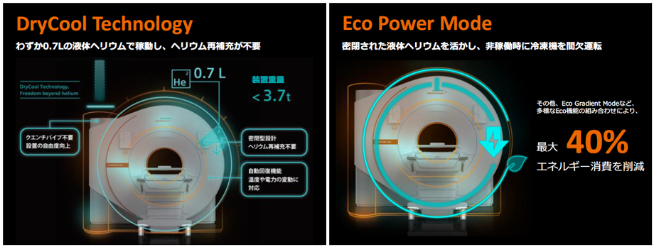 ヘリウムフリー構造と省エネ機能の組み合わせにより、クエンチリスクとランニングコスト低減に貢献