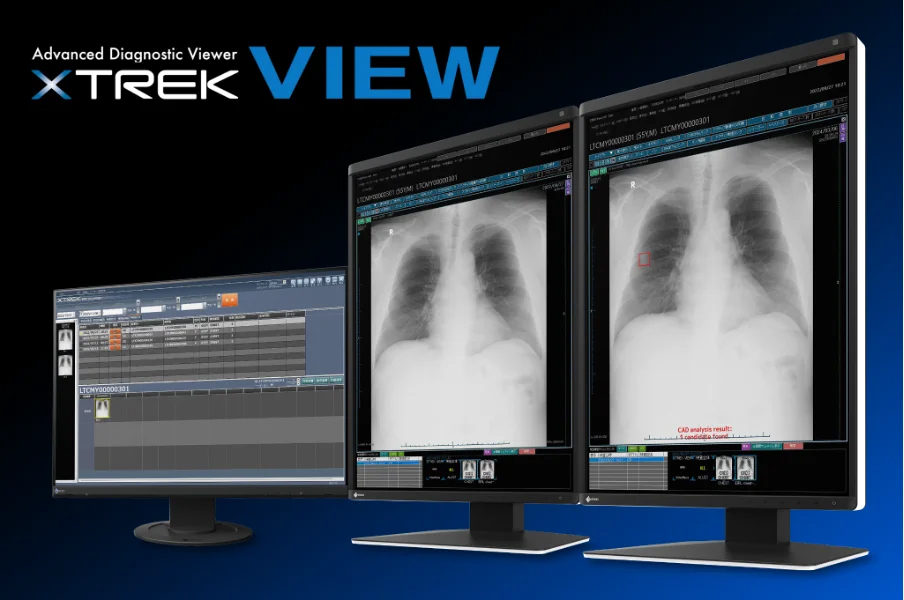 「XTREK Series」をお使いのユーザー様は、ボタン操作一つでシームレスに画像診断支援AI「EIRL(エイル)」による解析結果を参照いただける。