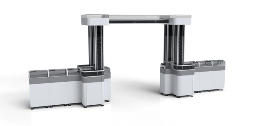 搬送ラインの両側に分析装置や処理モジュールを配置できるレイアウト構造を採用することで、省スペースな運用が可能になり、検査室の限られたスペースを最大限に活用できる。加えて、新たに導入した橋梁モジュールや垂直輸送モジュールにより、上下方向の空間を活用した3Dレイアウトも可能となり、検査室の規模やニーズに応じて柔軟な設計を行うことができる。