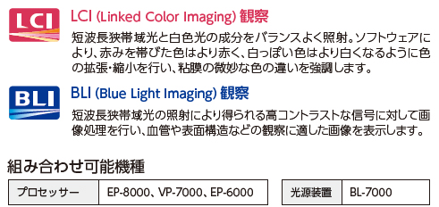 「BLI」「LCI」機能に対応しており、特殊光観察が可能である。