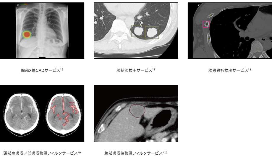 *6 胸部X線CADサービス(CXR-AID)は、「胸部X線画像病変検出ソフトウェア CXR-AID」の【類型1】によって提供されるサービスである。販売名:胸部X線画像病変検出(CAD)プログラム LU-AI689型 承認番号:30300BZX00188000