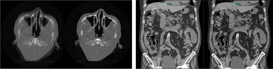 検査ワークフローにおいては、各工程においてAI技術*3を活用して開発した自動化ソリューションやSYNAPSE VINCENT Core*4との連携による効率化を提案してきた。今回、さらに検査オーダー、検査後の後処理においてAI技術を活用して開発したワークフロー向上技術を強化することで、検査プロセス全体を通じた効率化を目指す。画像処理においてはDeep Learningを活用して開発した画像ノイズ低減処理技術DLR Focus*2,3を新たに搭載し、さらなる低被ばく化をめざした。